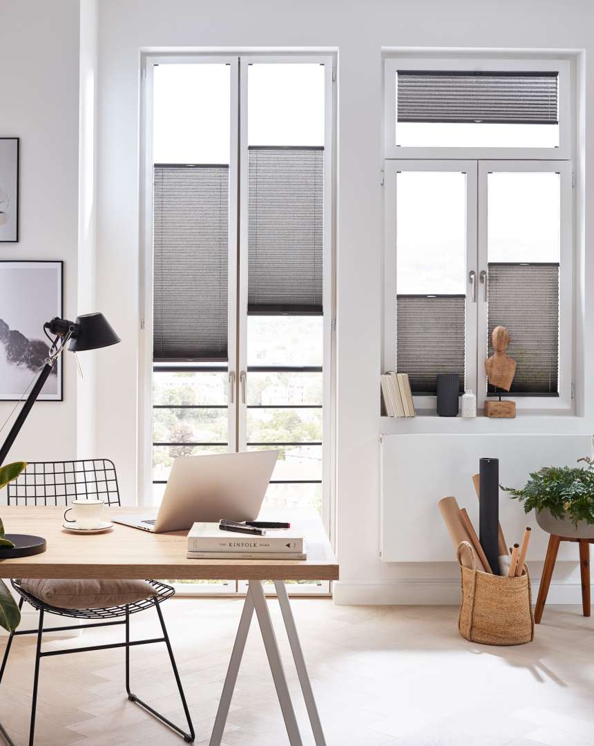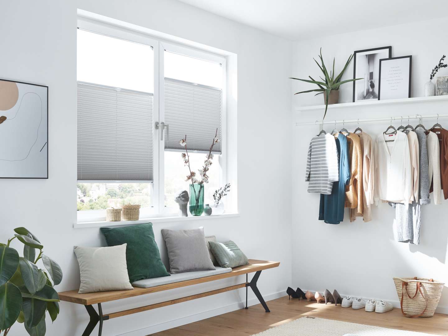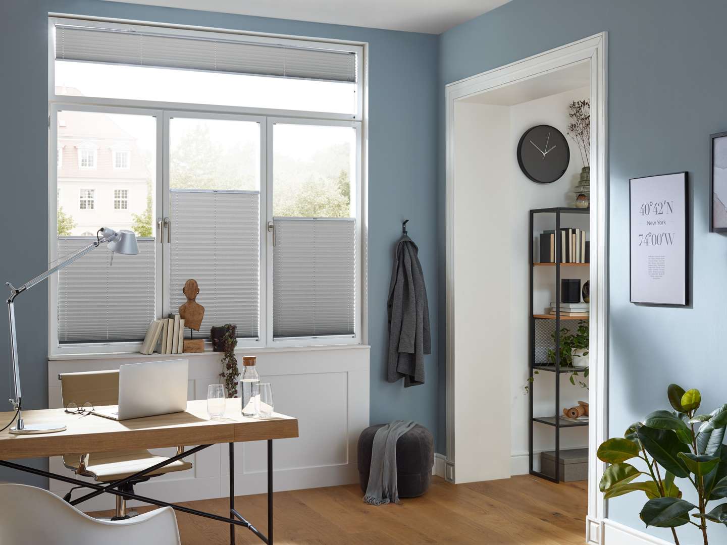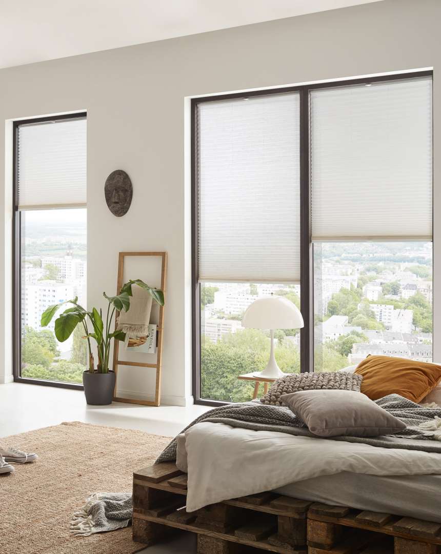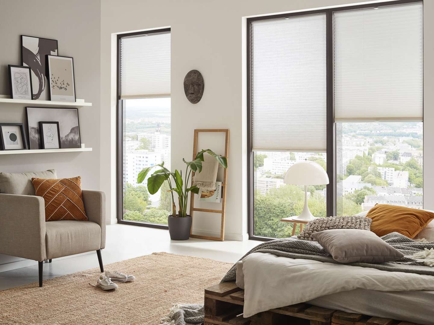 LEHA Plissees sind in über 400 verschiedenen Farben und Stoffqualitäten erhältlich – von transparent über halbtransparent bis hin zu dim-out und blickdicht. Für eine harmonische Optik stehen sieben Schienenfarben zur Auswahl sowie formschöne Metallgriffe, die perfekt auf das Gesamtdesign abgestimmt sind.